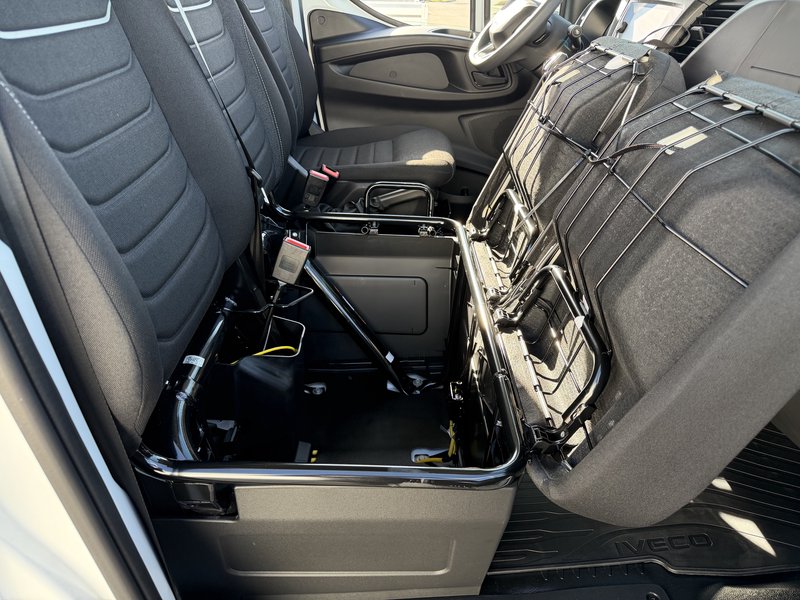 - Sitze im Fahrerhaus: Beifahrerdoppelsitz mit Staufach,